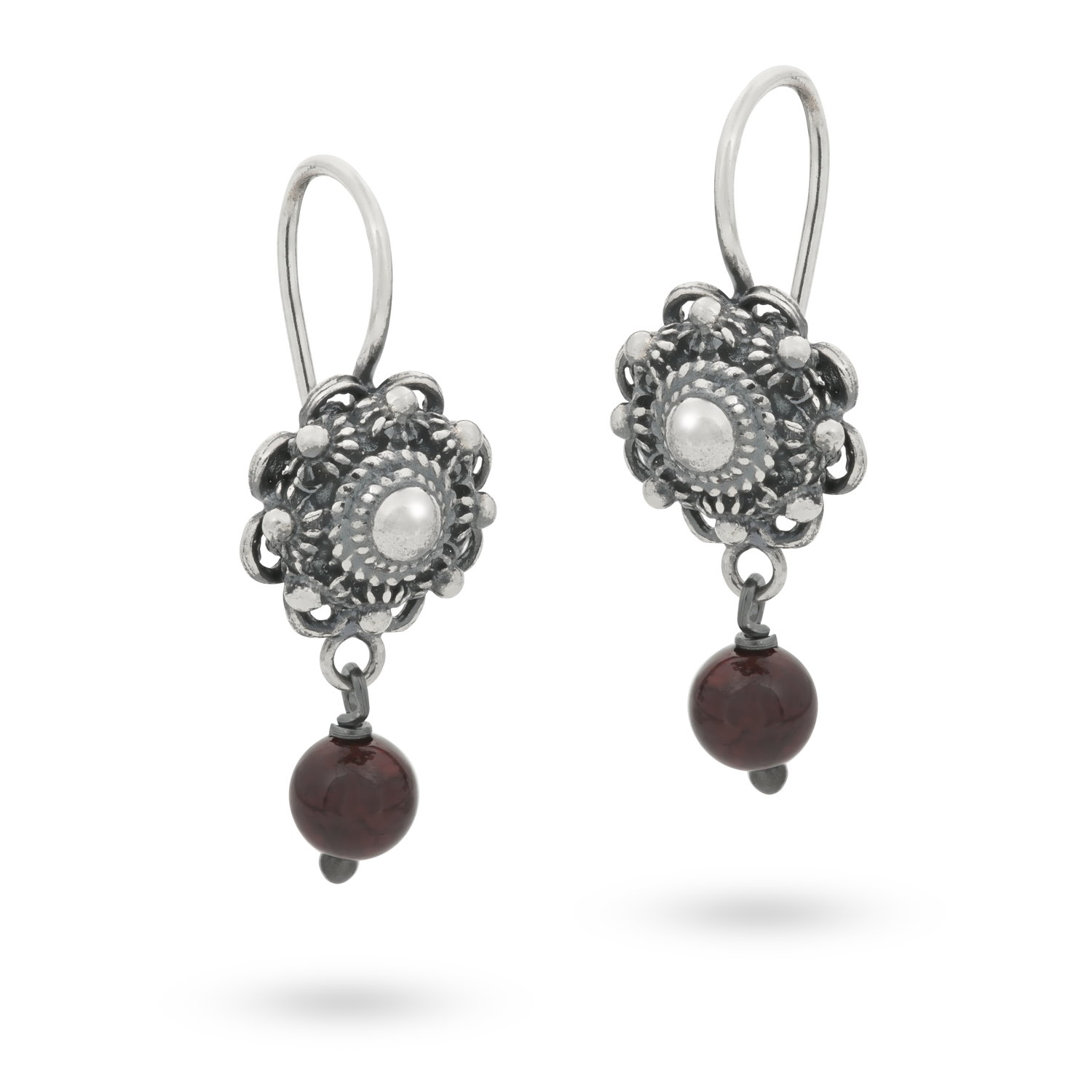 Deze oorhangers zijn origineel Zeeuws en bestaan uit een Zeeuwse Knop met een doorsnede van 10mm en een granaat. Het sieraad is volledig met de hand gemaakt en bestaat – op de granaat na – volledig uit de hoogste kwaliteit zilver (925). Daarnaast is het zilver geoxideerd. Nikkel zit er niet in.